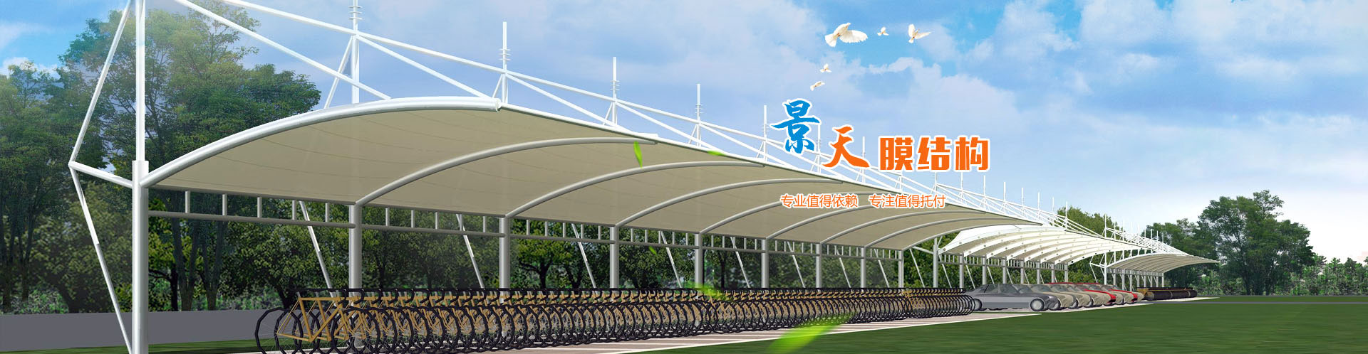 專注于充電樁車棚、自行車車棚、汽車車棚、膜結(jié)構(gòu)體育看臺(tái)、膜結(jié)構(gòu)景觀、污水池反吊膜、體育場館等工程